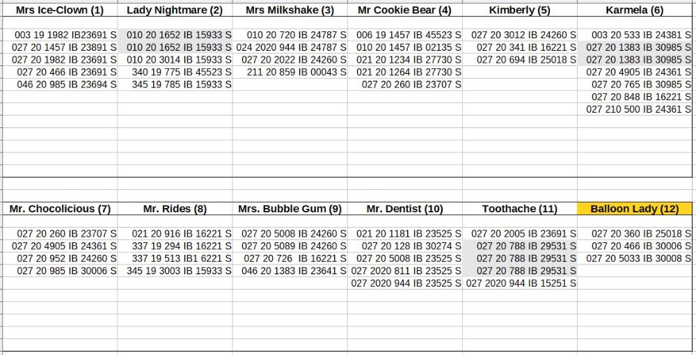 habe nur mr toothache aber die von dir genannte nummer ist identisch (beide zeilen)