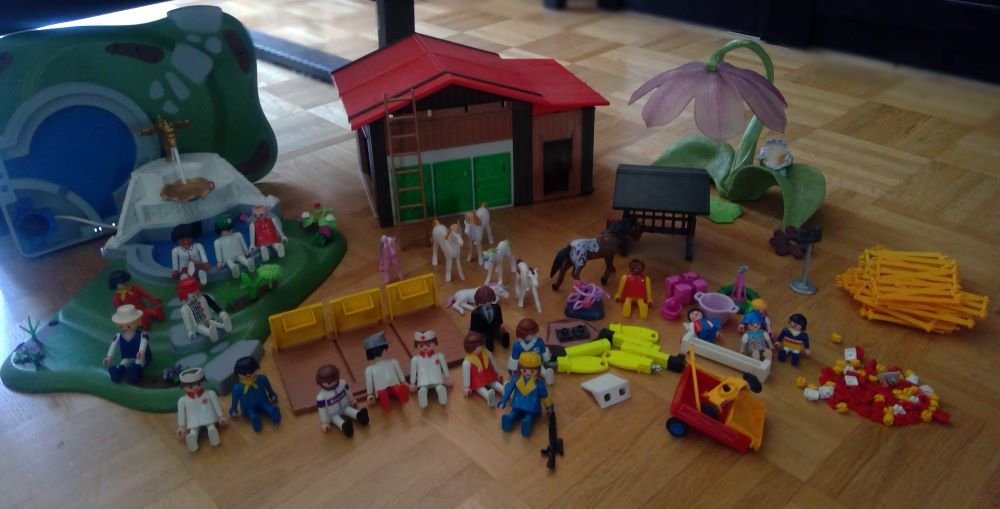 Wärs nicht so heiß gewesen, wärs wohl noch etwas mehr geworden. Der eine Stand hatte eine riesige Kiste mit Figuren und Kleinkram und dann noch eine mit Bodenplatten und Häuserteilen.