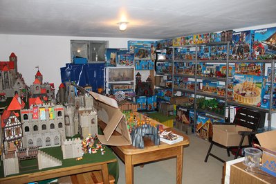 Ein paar schätze habe ich noch bei meinen eltern in einer zweiten kammer. Mache demnächsr mal bilder davon. In der ecke die eisschalen sind nicht voll mit figuren einzelteilen, sondern voll mit figuren. Nach themen, filmen, oder familien unterteilt. Figuren steck ich so auf dem film set. In der ecke sitze ich auch meistens. Weiter nach vorne gesehen stapel sich kisten mit playmobil teilen und bastel utensilien zum modellbauen.