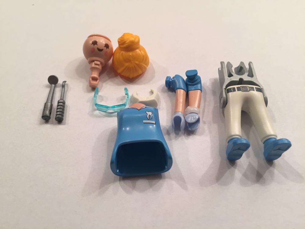 Zahnärztin: sehr leere Tüte, Frisur mit deutlich tastbarem Dutt