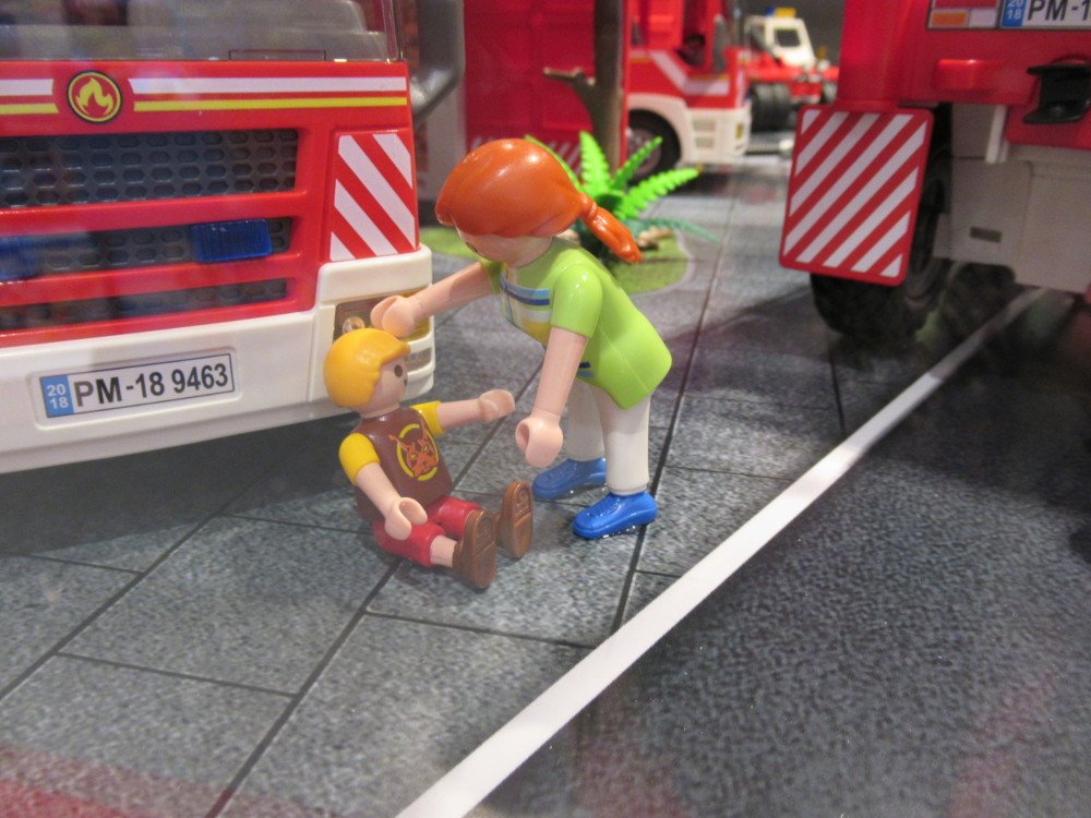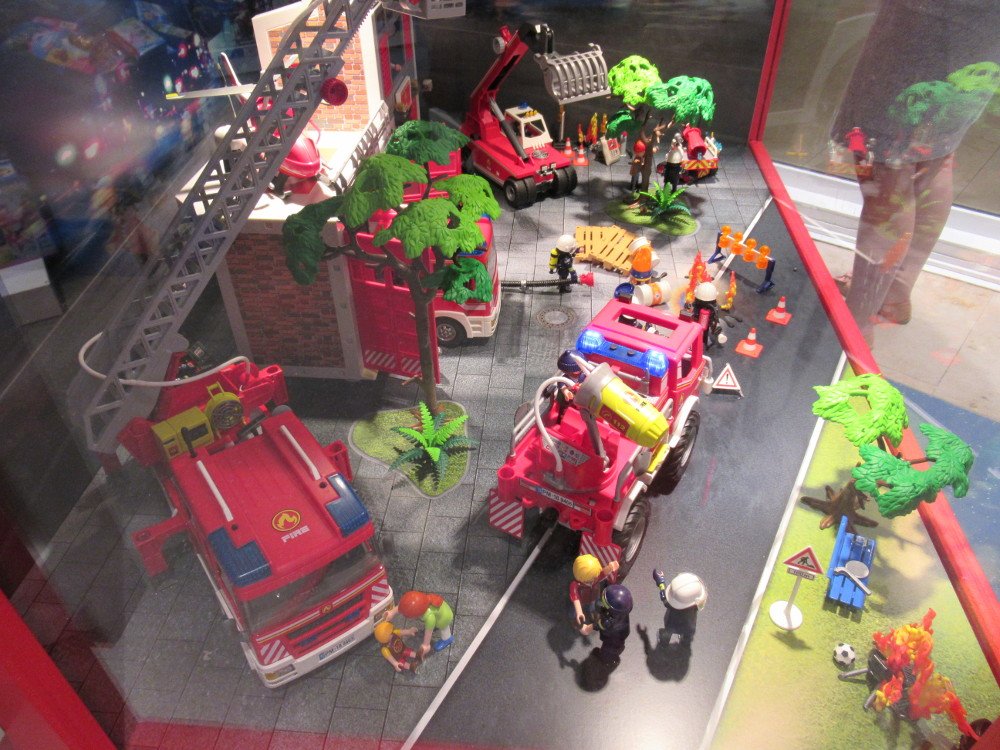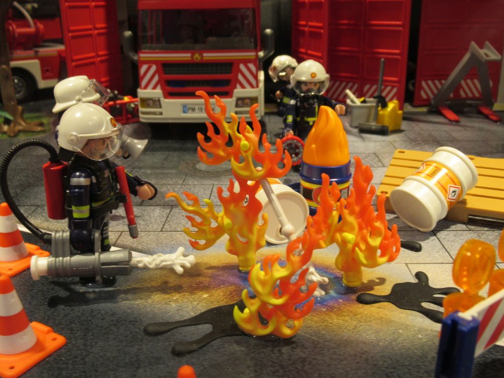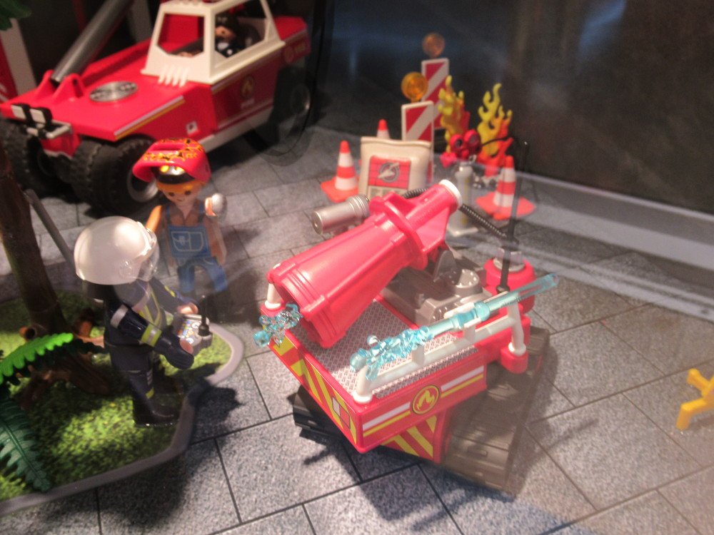 ist mit einem Diorama zum Thema "Feuerwehr" beladen.