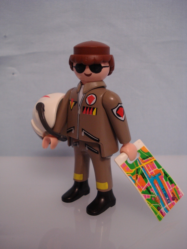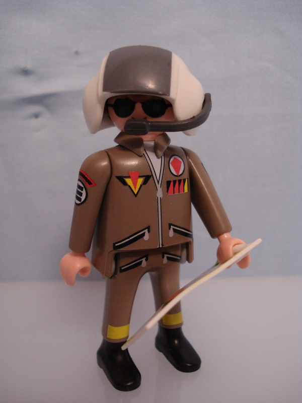Beim Pilot ist der Helm am auffälligsten.