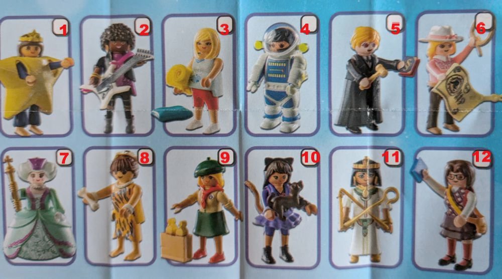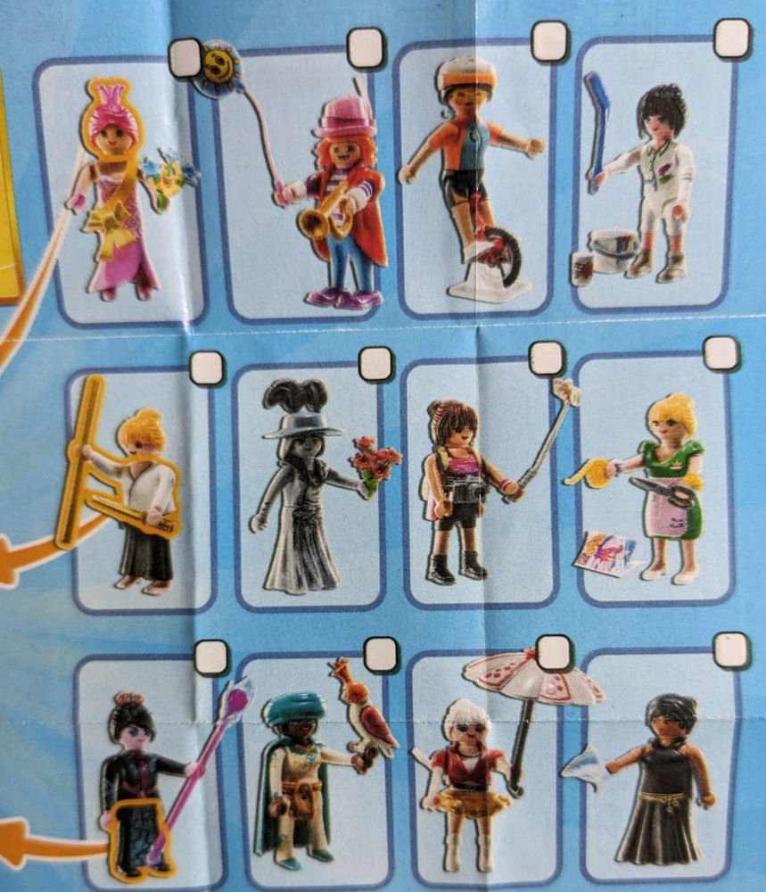 Ich habe zwar noch nicht alle, aber einige konnte ich in dem kleinen 24er-Display (2x12) in unserem Spielwarenladen ertasten:
