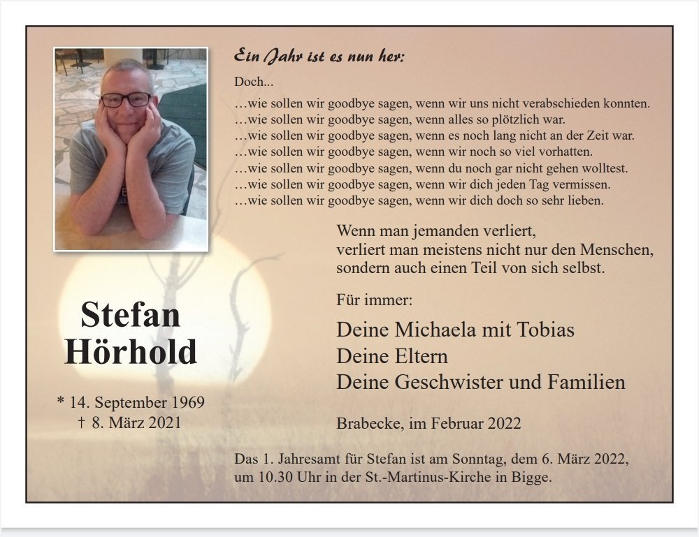 Im Auftrag von Stefans Witwe soll ich euch nochmals die allerbesten Grüße übermitteln.