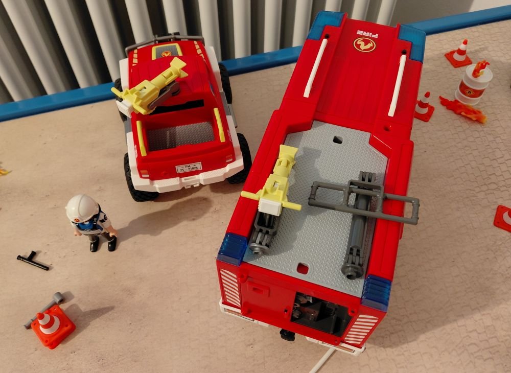 An einem der Spieltische (in der Ausstellung in Schneeberg) ist ein solches Fahrzeug vorhanden. Nach rund zwei Monaten ausgiebiger Tests durch die Besucher ist das graue "BS-Gelenk-Sonar/Satel.", verwendet für den Wasserwerder, ausgebrochen oder angekaut. Das schwarze "BS-Gelenk-Sonar/Satel.", verwendet für den Lichtmast, ist unbeschädigt. Allerdings sind beide Einsteckpunkte am grauen "FW-RFZ 13-Riffelblech" dermaßen ausgefranzt, dass weder der Lichtmast, noch der Wasserwerfer, verwendet der unbeschädigte vom Geländewagen, richtig sitzen. Man kann beides aufstecken, aber es sitzt nicht fest und eiert.