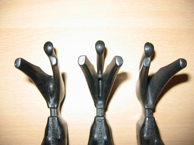 Als ich heute meine Flohmarktfunde vom Wochenende gewaschen habe, ist mir zum ersten Mal aufgefallen, das es zwischen den Hinterbeinen verschiedene "alte" Pferde gibt: mit Wölbung, Vertiefung und flach (v.l.).