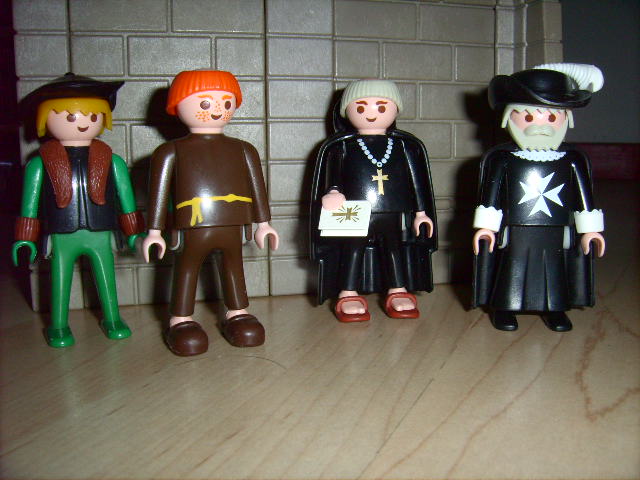 seht mal, was ich ersteigert habe. Diese Herren waren in einem mittelgroßen Konvolut. Der Preis war nicht billig, aber okay. Möchte nur mal wissen, ob der Verkäufer wußte, was er für Schätze hatte. Denn einerseits waren die Mönche extra verpackt und die Bibel wurde im Text erwähnt, andererseits war es Kiloware, angepriesen als Erntedankfest-Szenario mit Klickybauern und einem Stecksystemhaus.