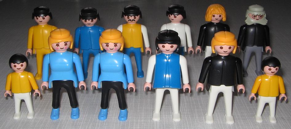 Der Inhalt entspricht (leider) exakt dem was auf der Abbildung im Katalog zu sehen ist: alte Formen mit Bauchfalte und Strampelanzügen, zwei identische Knaben und die einzigen Figuren mit Schuhen sind zwei identische Damen mit Schnürsenkeln in den Sportschuhen.