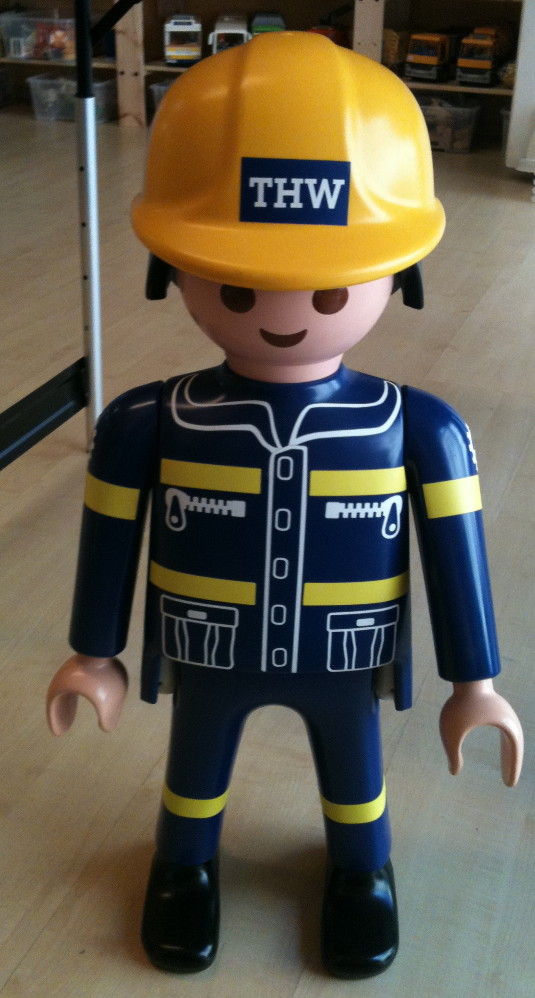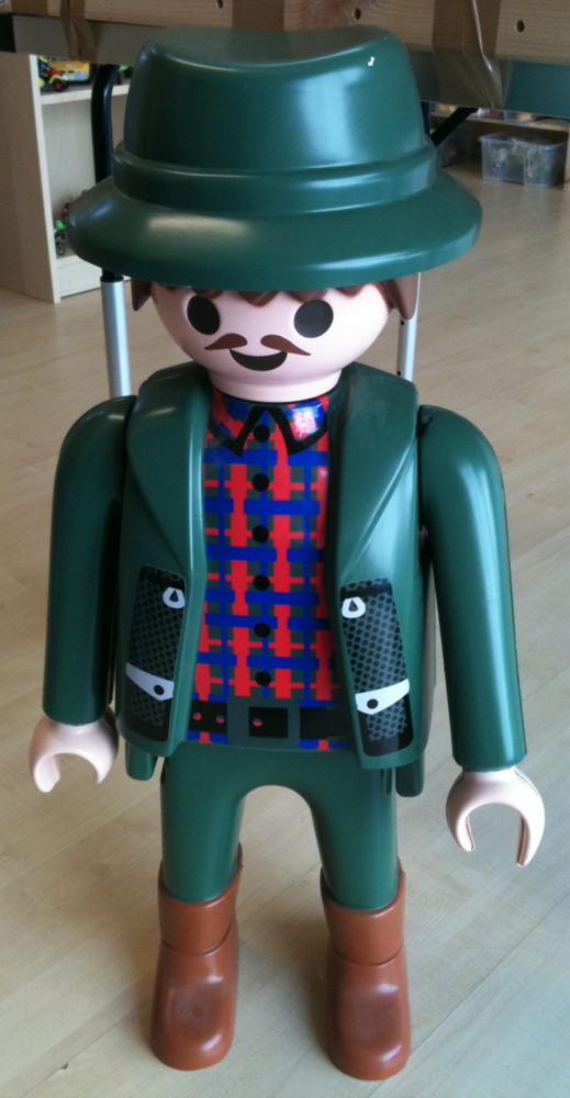bis jetzt hatten wir nur den kleinen Bauarbeiter der uns eigentlich auch gelangt hat da wir noch 2 große 1,60 Figuren haben ( Clown , Römer) .
