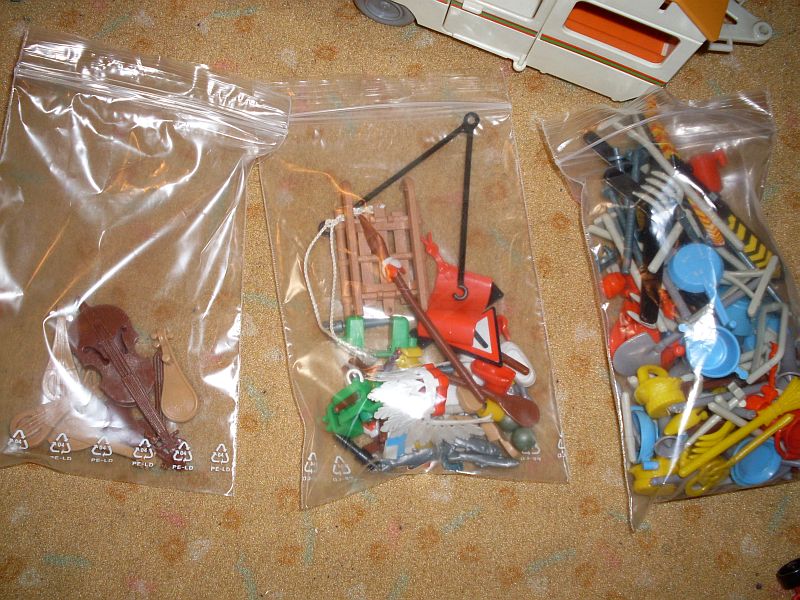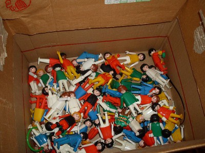 Ich denke mir, hhmh, was mag das sein, öffne sie, und bekomme fast einen Herzkasper, 3 Kartons voll altem Klickyplaymobil, mit vielken seltenen Sachen!