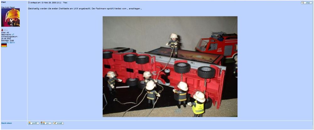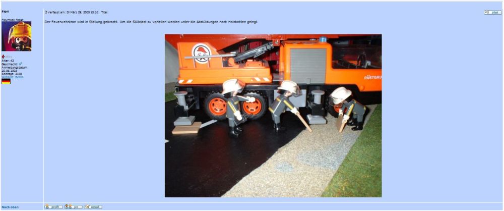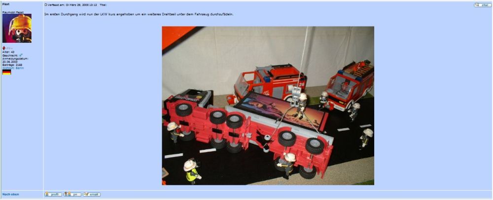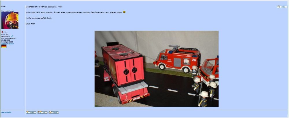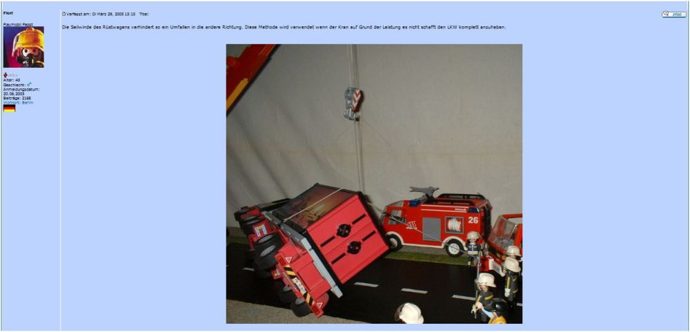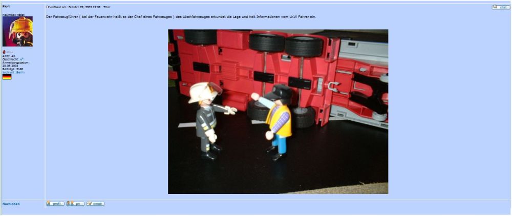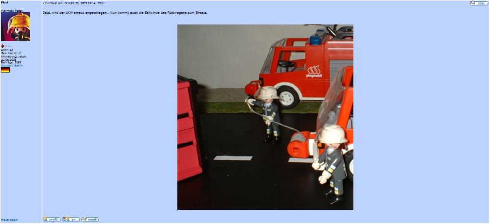 Mod.Edit: Thread verschoben. Das ist keine Playmobil-Historie, höchstens Forums-»Historie«. Weil nur Feuerwehr mit drin ist, habe ich es zu »Blaulicht & Co.« verschoben. VG zugpferdchen