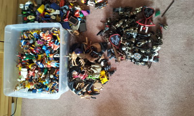 Hier mal ein Teil meiner Funde von heute . Über 300 Figuren viele Ritter, Tiere und Zubehör.