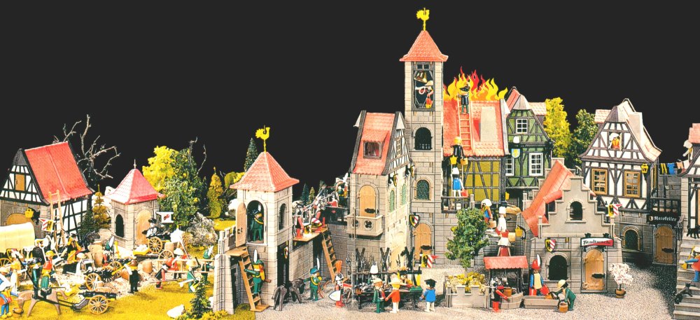 Ich würd mal sagen, das klassischste aller Dioramen ist der Umschlag vom Katalog von 1977. Das könnte eine Darstellung des Bauernkrieges sein, also ca. 1525. Und da gab es Kanonen :grinsen