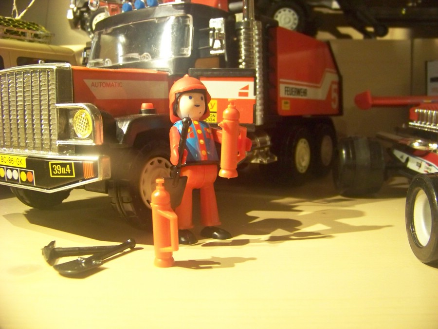 Bis vor kurzen kannte ich die Figuren gar nicht. DAs einzige was ich davon hatte war der rote Feuerwehrhelm. Dieser Helm passt problemlos auf eine Playmobilfrisur.