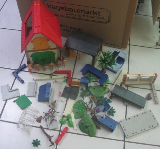 Etwas Playmobil gab es auch :lol .Den Bauernhof 4490 zu 90%(Hauptgebäude fast vollständig ) und paar Supermarkteile & paar Badefiguren alles für 5,-€ war es meins.ZUm rumbauen reicht es hier :grinsen .