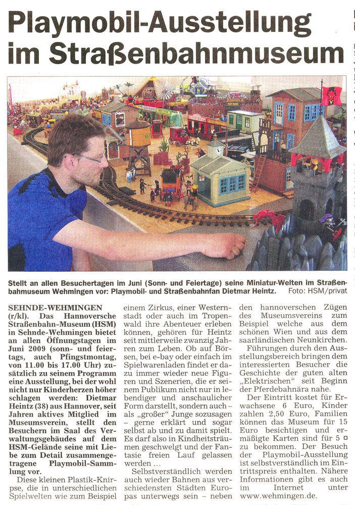 Artikel zur Playmobil Ausstellung im Straßenbahn-Museum