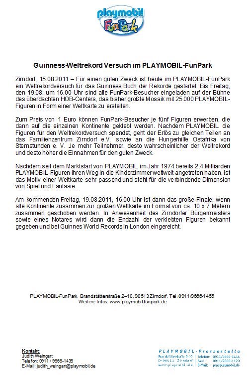 Treuhänderisch nehme ich eure Spende entgegen und gebe diese an Playmobil weiter.