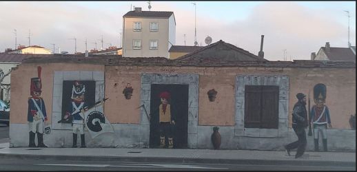 In der Früh auf dem Weg zur Firma habe ich diese Wandmalerei an einem Abbruchgrundstück gesehen. Da es dort später hell wird, sind die Handybilder etwas kontrastarm geworden.