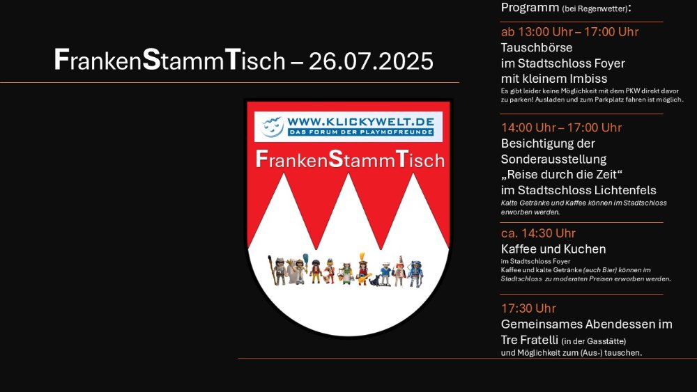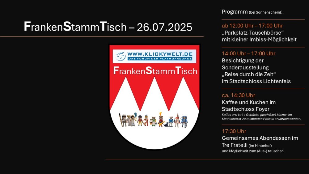 Ich darf euch nun das Programm für den FrankenStammTisch am Samstag, 26.07.2025 präsentieren
