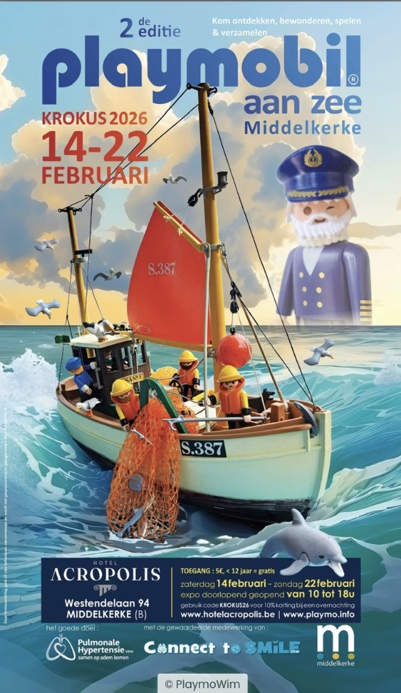 Vom 14 bis 22 Februar gibt es dem Expo Playmobil an das Meer in Middelkerke / Belgiën. Es gibt Diorama’s und Verkaufer. Ähnlich mit unsere beleibte Bepa.