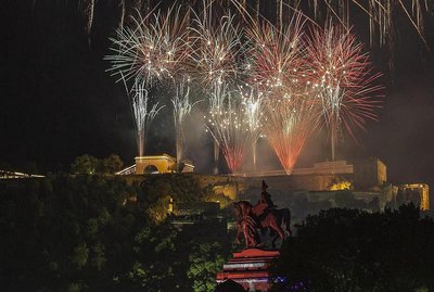 und bietet ein 25 minütiges Höhenfeuerwerk über Rhein