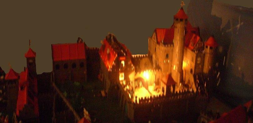 Riesenfestung Novelmore mit Untotenzug (nein, das ist nicht die nächste zeitliche Epoche nach der Industrialisierung, sondern der Abschluß vom Rundgang in der Burgküche, wo die Festung unter dem Abzug des Kamins aufgebaut wurde)