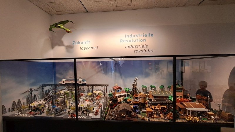 Das nächste Diorama - Steinzeit -, das sich eine Vitrine mit dem Mittelalter teilt: