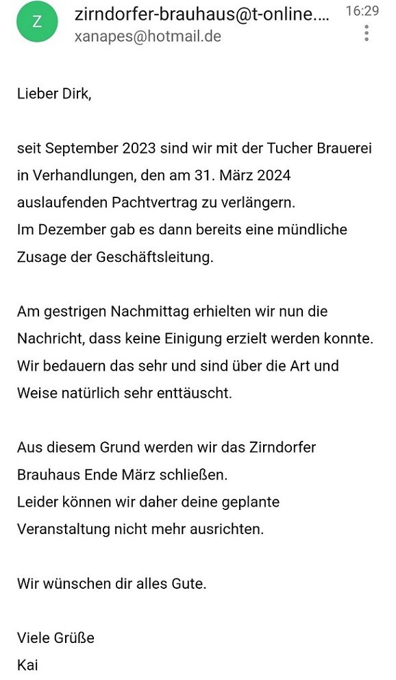 Nun gut, es bleibt die Frage ob es zu dem Zeitpunkt bereits einen neuen Pächter gibt oder wie eine andere Örtlichkeit in Anspruch nehmen.