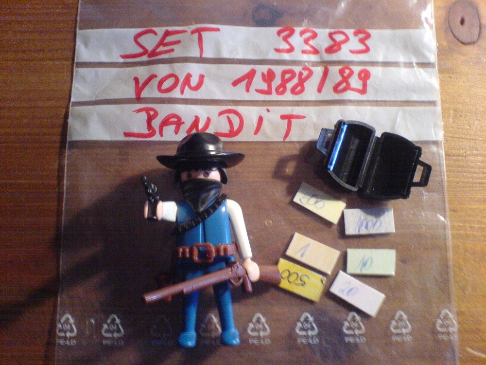Dann noch ein letztes: Ihr braucht die Beute aus dem Bank-Raub von Klicky-Gulch 1988 nicht mehr suchen. Ich habe sie in der schwarzen Tasche des Bandites Set 3383,