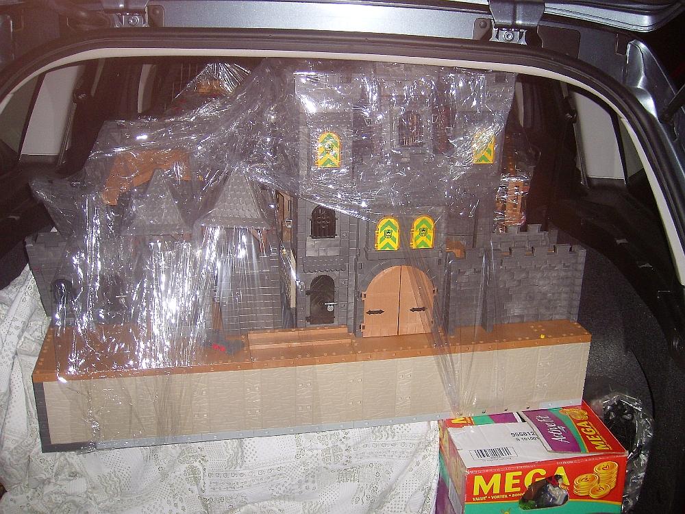 Ich bin jetzt auch wieder glücklich zu Hause angelangt, die Burg ruht zum Leidwesen meiner Frau noch in unserem Wohnzimmer, aber keine 10 Pferde hätten mich jetzt wieder dazu gebracht, die Teile heute abend noch unters Dach zu bringen. :oops