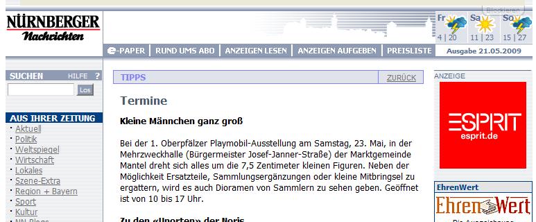 Nürnberger Nachrichten online, heute, 21.05.09