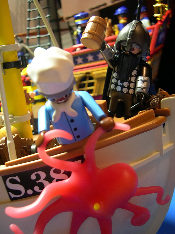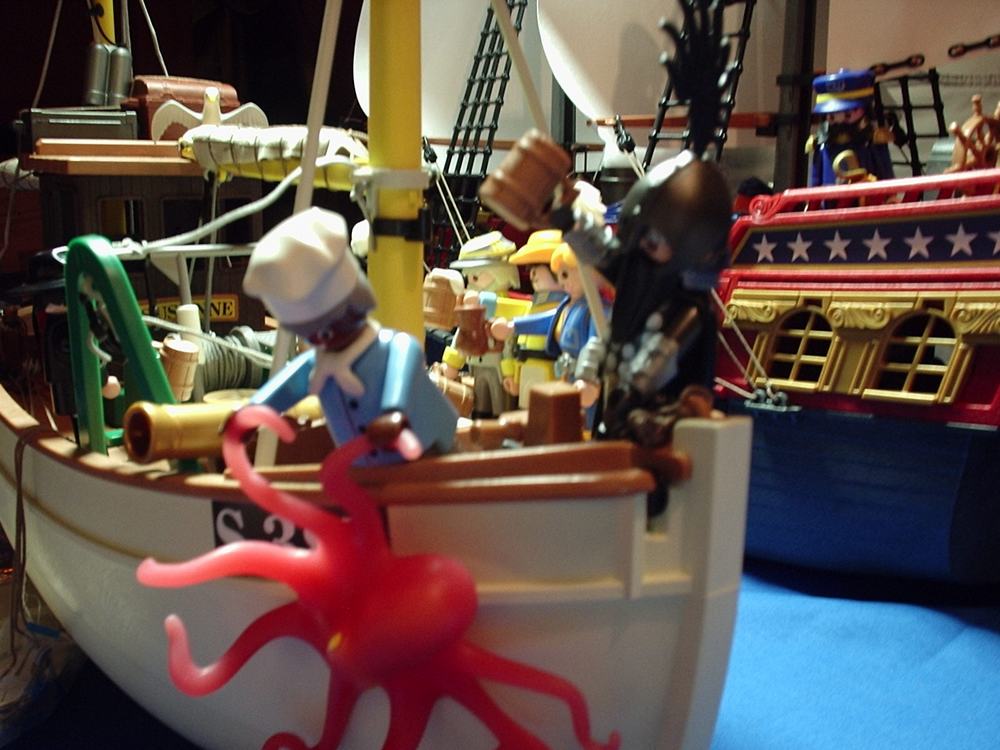 Uneinigkeit herrschte nur ein wenig über den Speiseplan. Während John Louis begeistert von der Idee war, ein paar fritierte Tintenfischringe zu servieren, konnte sich Freund Hagen so gar nicht mit der Idee anfreunden, daß sein Haustier den Ozean mit der Friteuse vertauschen sollte...