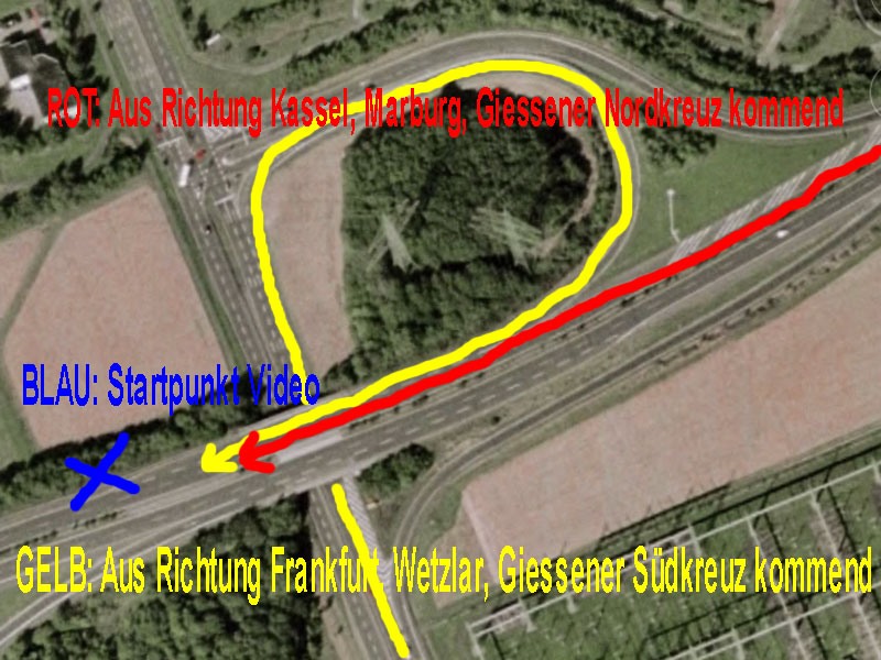 Schritt 3: Irgendwann kommt Ihr somit automatisch an die nordwestliche Ecke des Giessener Rings. Weiter Richtung Gladenbach / Biebertal. Siehe Luftaufnahme unten.