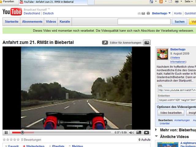 Schritt 4: Vom Startpunkt des Videos aus sind noch etwa 5 Minuten zu fahren. Um den richtigen Weg schon mal gesehen zu haben, schaut Euch einfach das Video an: Anfahrt zum 21. RMSt in der Pizzeria Kalamar in Biebertal *klick*.
