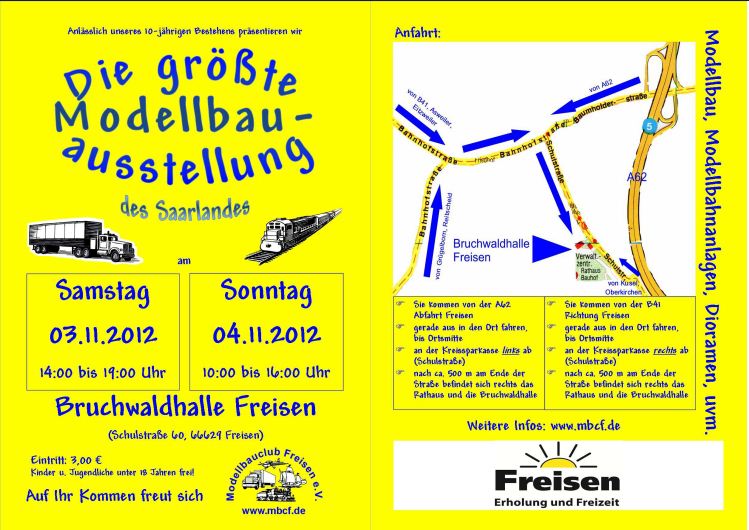 Am Wochenende 03. und 04.11.2012 findet in Freisen/Saarland die größte Modellbauausstellung im Saarland statt.
