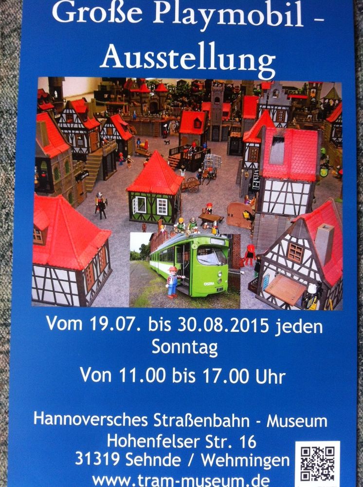 Ab dem 19.07.2015 bis zum 30.08.2015 habe ich wieder meine große Playmobil Ausslellung im Hannoversches Straßenbahn-Museum. Jeden Sonntag von 11.00 bis 17.00 Uhr geöffnet.