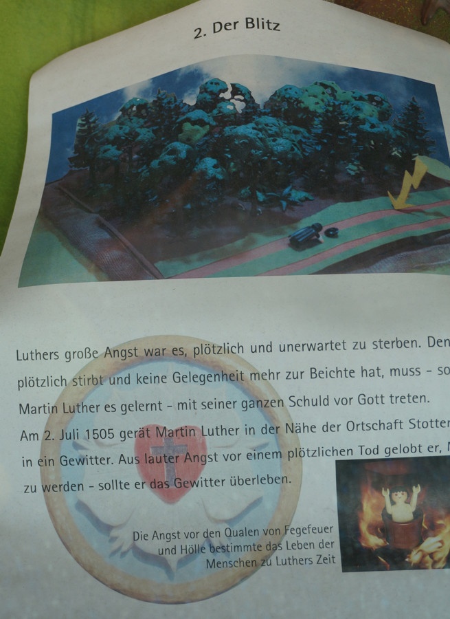 Daß die Figur umgekippt ist, ist nicht so schön. Als ich ging, stand sie noch (dafür lag der Luther vor dem Blitz im Wald - den hat anscheinend ein gutmeindender FunPark-Mitarbeiter vor dem Einglasen wieder aufgestellt, wie ich gerade gesehen habe