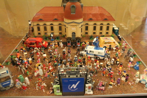 Besonders ist auch die Vitrine mit dem VIP-Sommerfest. Dort finden sich 181 Figuren, die berühmte Personen aus Geschichte und Gegenwart darstellen und ein Fest feiern. Gefeiert wird vor dem Modell der Kulturkirche Neuruppin. Es macht Spaß, die einzelnen Namen zuzuordnen.