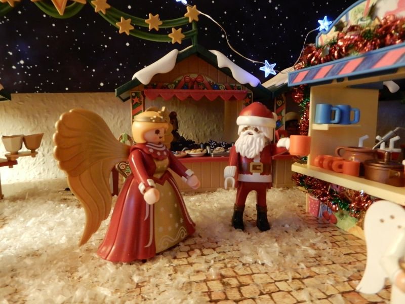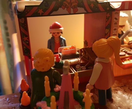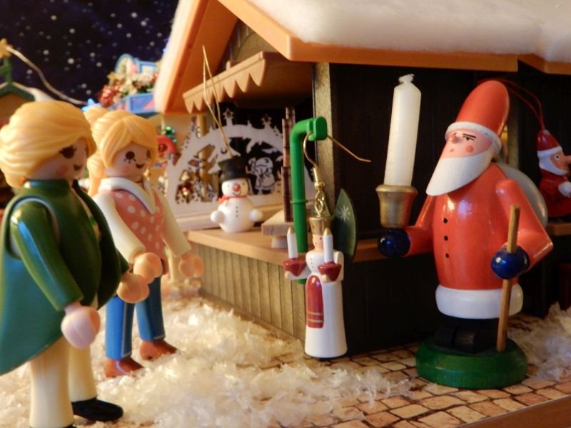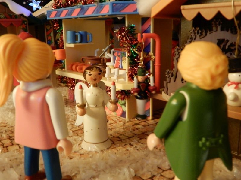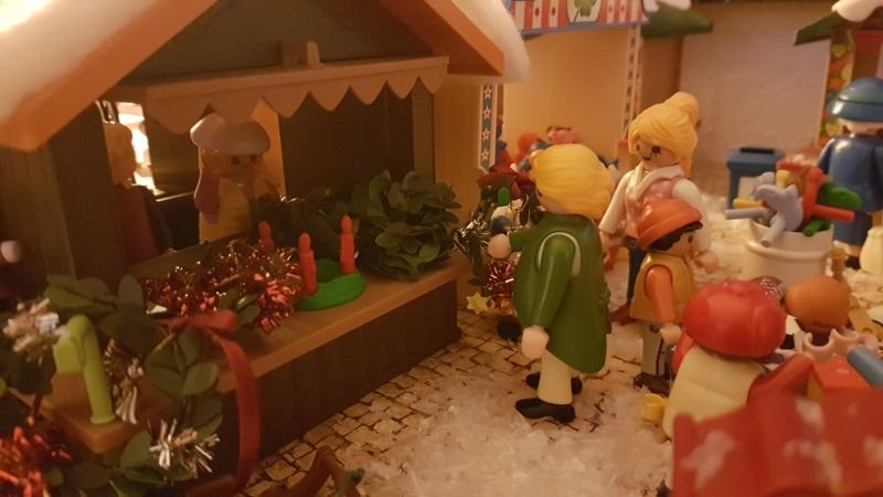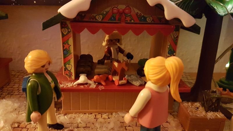 Ein sehr schöner Weihnachtsmarkt, besonders mit der Tapetenrolle im Hintergrund.