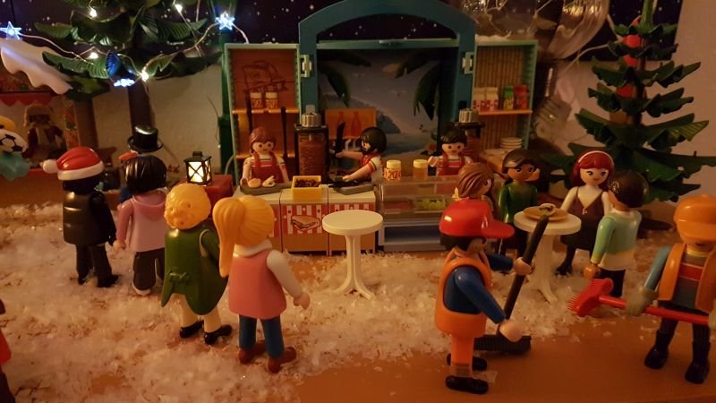 Gerade rechzeitig zum ersten Advent hatte ich die Buden aufgestellt und dann hat es auch noch geschneit.