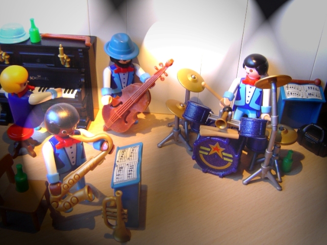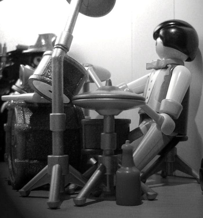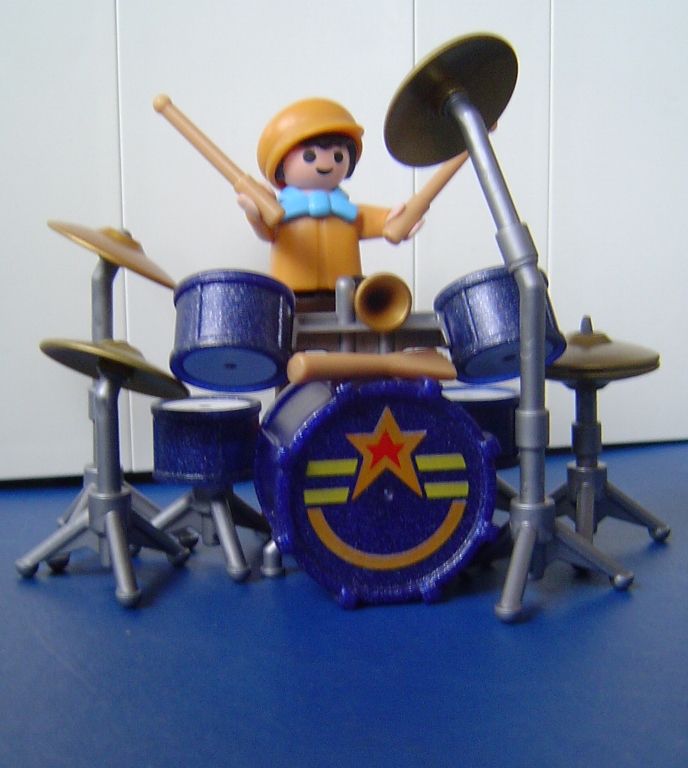Da ich passionierter Schlagzeugspieler bin, hab ich mir letztens ein eigenes Playmoschlagzeug aus den Einzelteilen des ehrlich gesagt unrealistischen Schlagzeugs von Playmobil gebastelt.