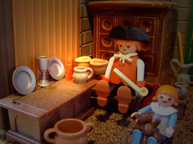 @schokoman, ja ich konnte die erste Szene auch nicht so gut fotografieren wie die zweite. Der Ofen ist eigentlich eine Spardose und Werbegeschenk eines Kachelofenbauers. Schon als ich sie erhielt wusste ich das sie perfekt zu Playmo passen würde. Aber leider ist sie schon kaptt, oben ist ein Loch, deswegen sieht man auch nur den unteren Teil :grinsen .