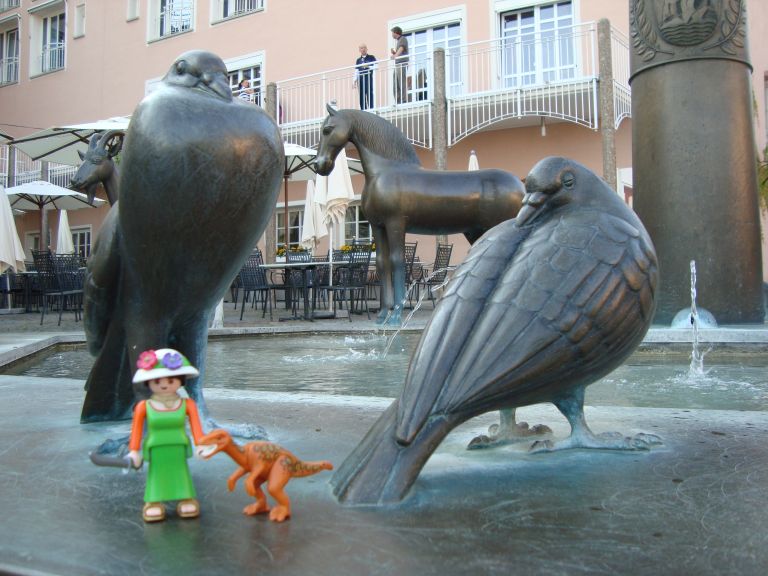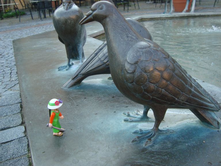 - Zum Glück sind diese Riesenvögel nur aus Metall.