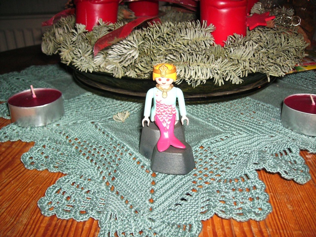 Am 24. kam es dann mit zu meinen Eltern wo es dann auf die Bescherung wartete. Ui, und was dann zum Vorschein kam, hat mich sehr gefreut, nein, die Dame erfreut mich immer noch, vor allem auf die Kombination schwarz-pink steh ich ja sehr. Sie ist echt klasse geworden und sie kam auch sehr bei meinen Geschwistern an, mein Bruder hat sie mir sogar gleich entwendet und mit ihr und seinem neuen Orca rumgealbert ( er versuchte sie fressen zu lassen, aber das Tier war zu klein, bedauerlicherweise gabs dann aber noch den Pottwal und sie wurde verschlungen, aber sie wurde gerettet und sitzt wieder fröhlich auf dem Rad). Nach dem aufreibenden Start war sie dann auch für ein, zwei Fotos gefragt: