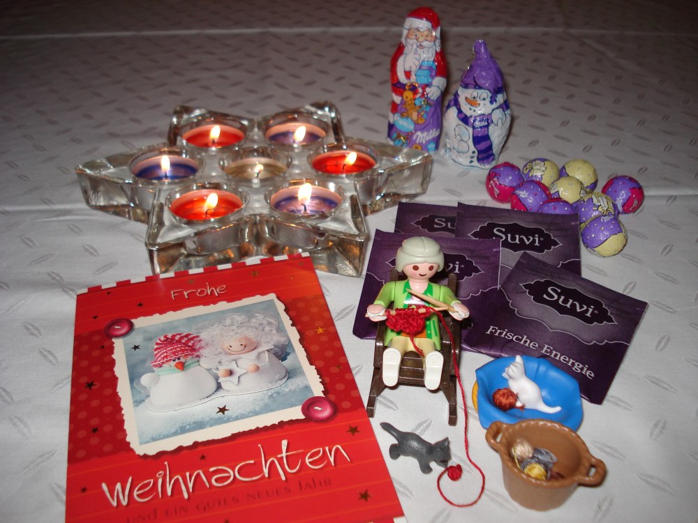mein Wichtel kam gerade noch rechtzeitig am Heilig Abend und so konnte ich ihn auch gleich öffnen und habe mich rießig über ihn gefreut.