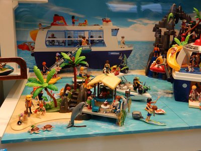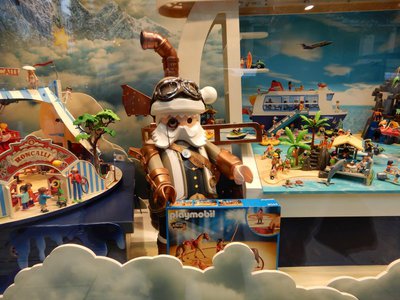 Natürlich bin auch bei dieser Gelegenheit auch wieder in die Spielwarenabteilung und bekam dort auf Nachfrage die Auskunft, dass die gesamte Auslage original so von Playmobil kommt. Der Kaufhof hat damit gar nichts zu tun.