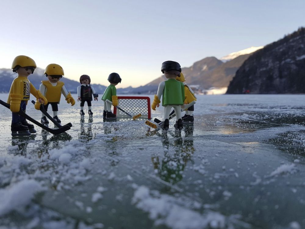 Außerdem tummelten sich Eishockeyspieler auf dem See.