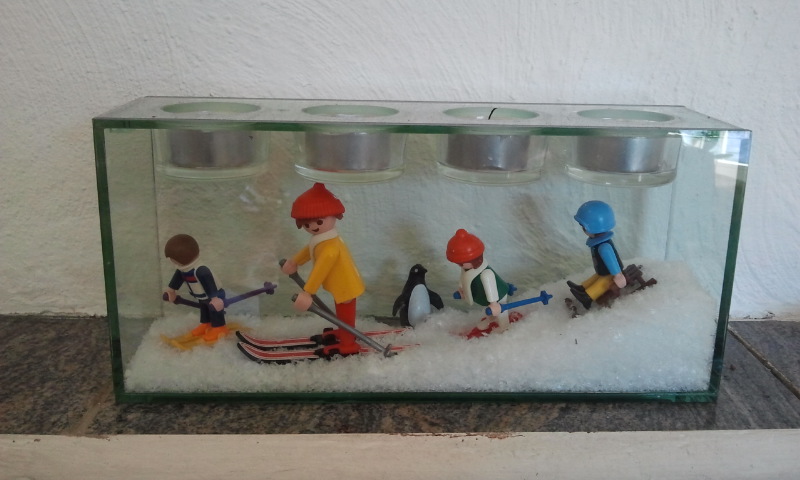Das ist ganz normaler Kunstschnee in Tüten aus dem Supermarkt.