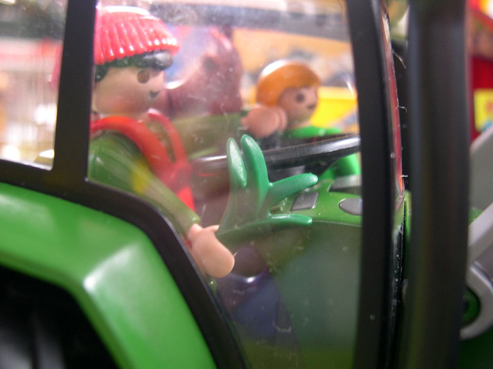- Wer fährt denn da den Traktor? Ach, das ist Tim mit seinem Wichtel, dem Bauern. *schmunzel* Die kurven schon die ganze Zeit zusammen durch die Gegend.