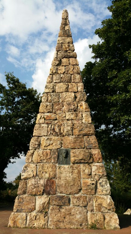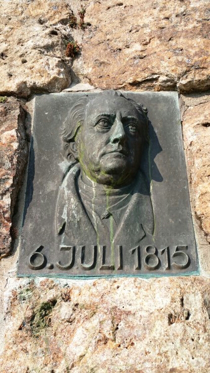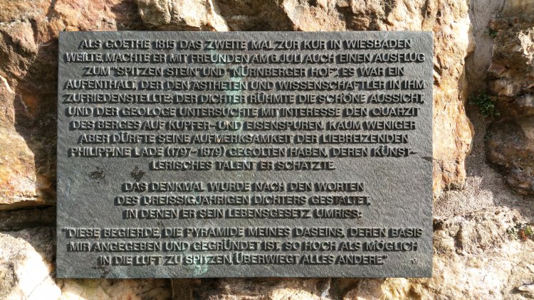 Goethe am Goethe-Stein. Ein romantischer Aussichtspunkt mit Blick in den Rheingau, den Goethe am 06.07.1815 besucht hat. Ihm zu Ehren wurde hier der Goethe-Stein errichtet.